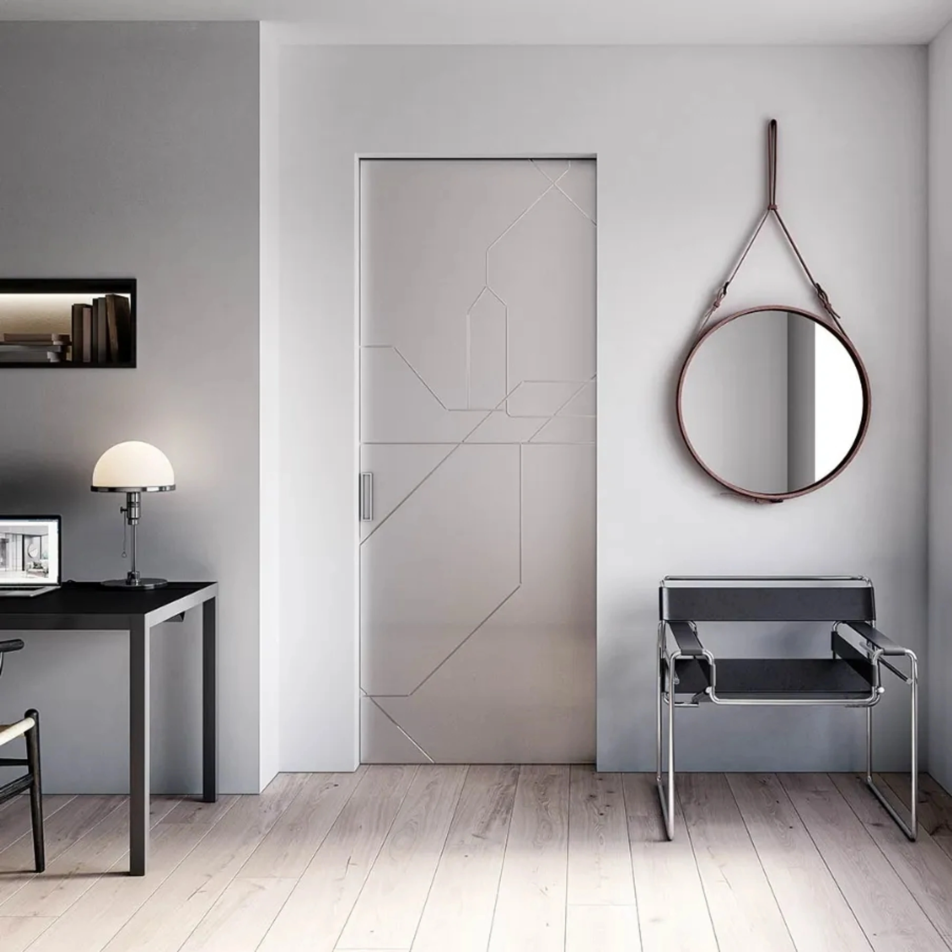 La Porta per interni Metro Map Alaska 3159 di Bertolotto in vetro coniuga estetica e innovazione tecnica in una proposta di tendenza ideale per te, resistente nel tempo e con un'estetica raffinata. Scopri nel nostro showroom le più esclusive Porte interne design a filo muro in vetro, tra cui troverai altresì il modello di charme presente in foto. La porta, al giorno d'oggi, non è unicamente un componente strutturale, ma diventa un oggetto decorativo per la casa: ti attendono da noi le migliori soluzioni. Con una ricerca davvero instancabile di nuove collezioni, decori e tecniche, il brand rende riconoscibili le sue esclusive proposte d'arredo di grande qualità.